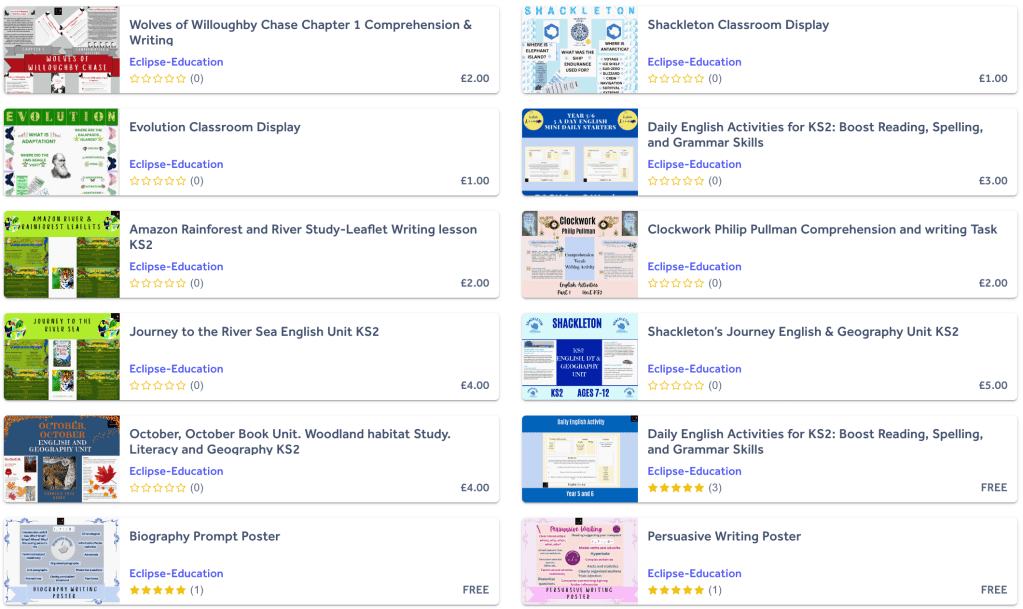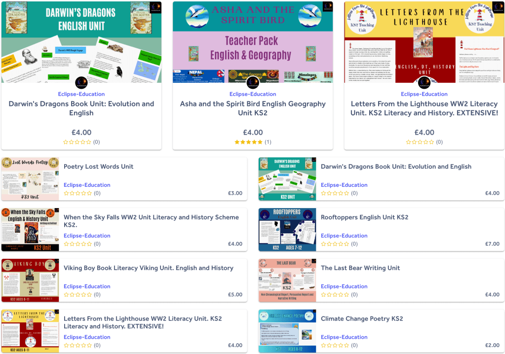 Please find below links to my KS2 Teacher Resources which you are free to purchase on my TES website. These units are based on inspirational children’s books and are packed full of writing opportunities, reading comprehension, SPAG and cross-curricular activities.